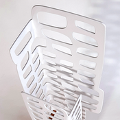 Esculturas y relieves en acero, pinturas sobre lienzos y dibujos de tinta sobre papel.